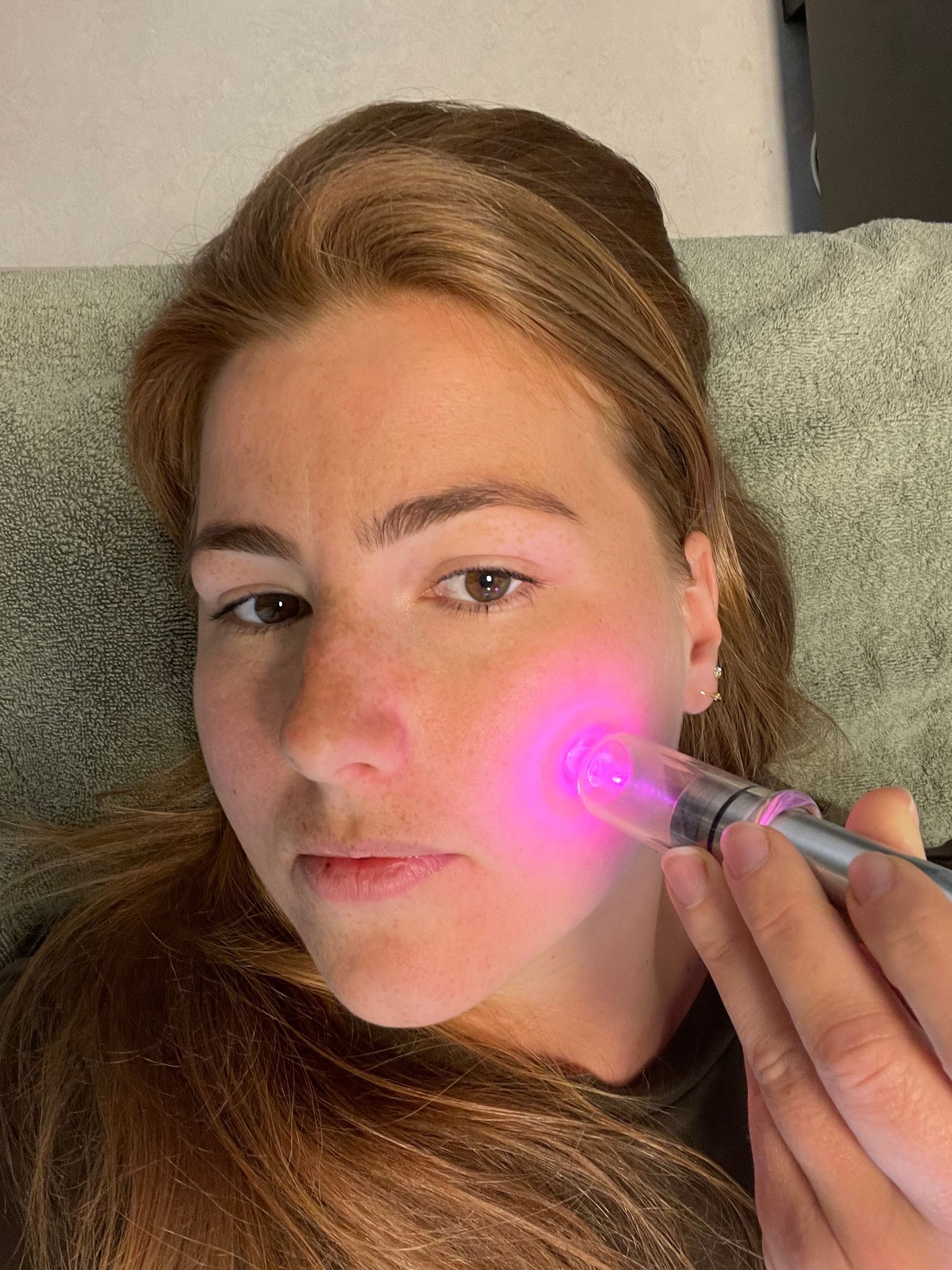 Met een speciale lichtstraal werk ik enkele centimeters boven de huid. Deze lichtfrequenties hebben invloed op het energieveld en de trilling van je cellen. Licht is trilling, en trilling is energie — elke kleur draagt een specifieke frequentie die inwerkt op je systeem. Denk aan:
